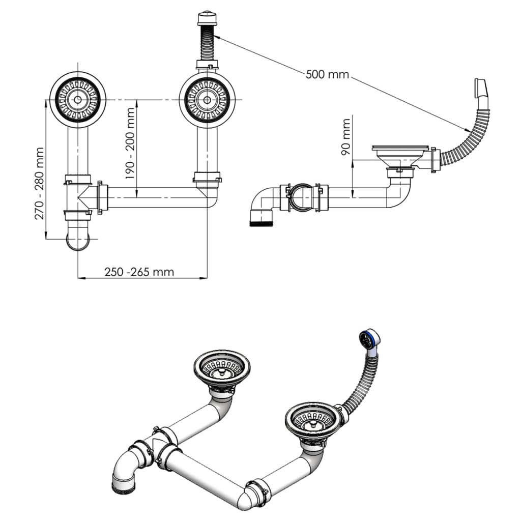 - Small basin dimensions: 162 x 305 x 100 mm (W x D x H)