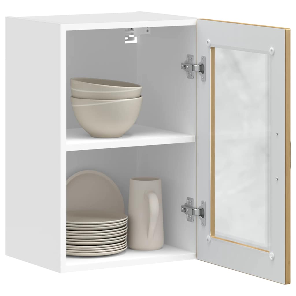 This kitchen wall cabinet is meant to optimise your kitchen space and decorate your home! Stable and durable material: Engineered wood is a durable and stable material with a smooth surface that is resistant to moisture, warping, and splitting, making it a reliable choice for a variety of projects.Ample storage space: The kitchen wall cabinet offers sufficient space to store bowls, plates, pots, and other kitchen appliances.Wall-mounted design: The kitchen cabinet can be wall-mounted to add extra storage space. That way, you can maximise your floor space and keep the area clean.Practical door: The glass door helps maintain a clean and organised space by concealing kitchen appliances while allowing clear visibility.Easy to maintain: Thanks to its smooth surface, this mounted wall cabinet is easy to clean with a damp cloth and requires less maintenance. Good to know:Screw(s) and plug(s) for inside the wall are not included. Seek and use screw(s) and plug(s) suitable for your walls. If you are uncertain, seek professional advice. Read and follow each step of the instruction carefully.