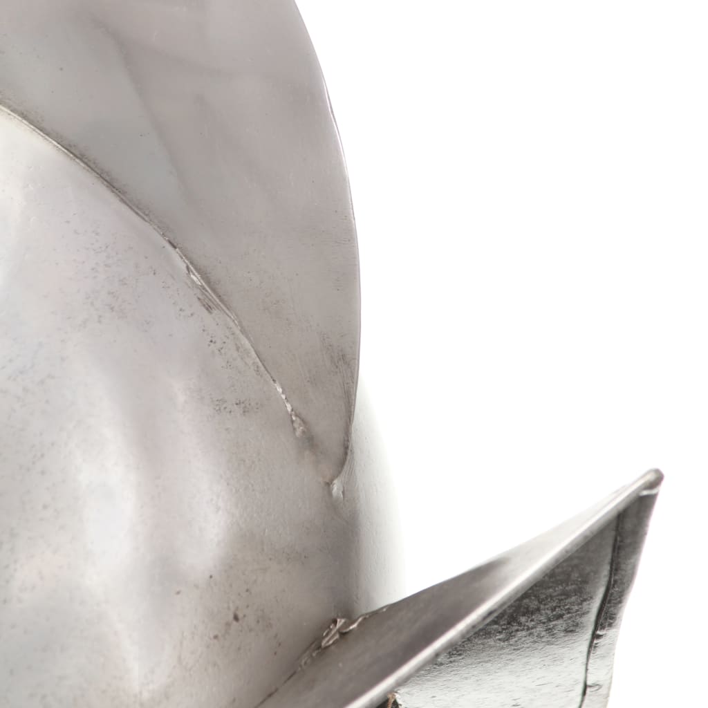 This antique looking armour helmet is excellent for LARP (live action role play), cosplay, parties with a historical theme, Halloween party, theatrical props and historical reenactments. The armour helmet is an exact replica of an original medieval helmet. It is also the typical lansquenet helmet. Made of polished 18-gauge steel, it combines antique style and sturdy material into an eye-catching helmet, which perfectly matches with your warrior outfit. Our helmet is still in use today in a similar form in the Vatican city. Additionally, it is also an attractive display piece.