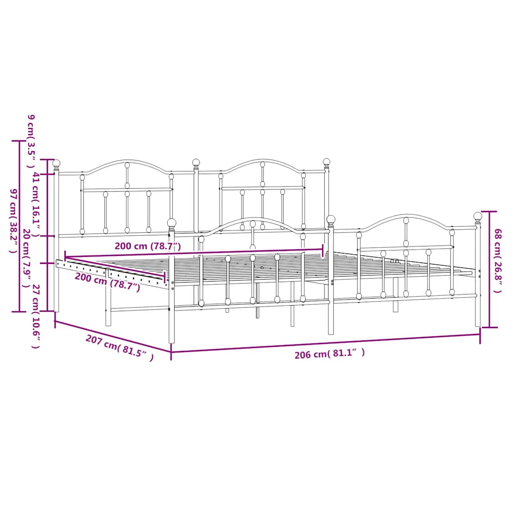 Metal Bed Frame without Mattress with Footboard White 200x200cm