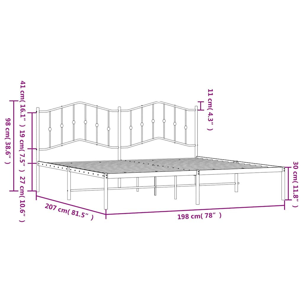 Metal Bed Frame without Mattress with Headboard Black 193x203cm