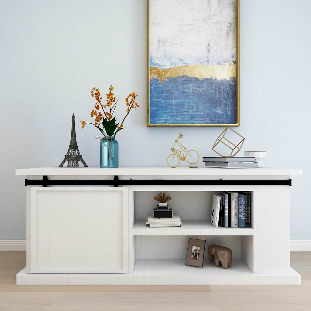 With this mini sliding cabinet door kit, you can open or close sliding doors of your barn, kitchen, study, etc. quietly and effortlessly. The sliding door track set suits almost any decor with its compact, timeless design. This sliding door hanger set includes 2 sliding rails (with a total length of 200 cm) and 2 wear-resistant rollers. The sliding rails are made of powder-coated carbon steel, which is sturdy, durable, and heavy-duty. Thanks to the internal bearings, your doors can slide smoothly and quietly. Door stops are also included to prevent the derailing of the rollers, while the rubber gaskets will buffer the bump from rollers and reduce the noise. Note: Only suit for cabinet door.