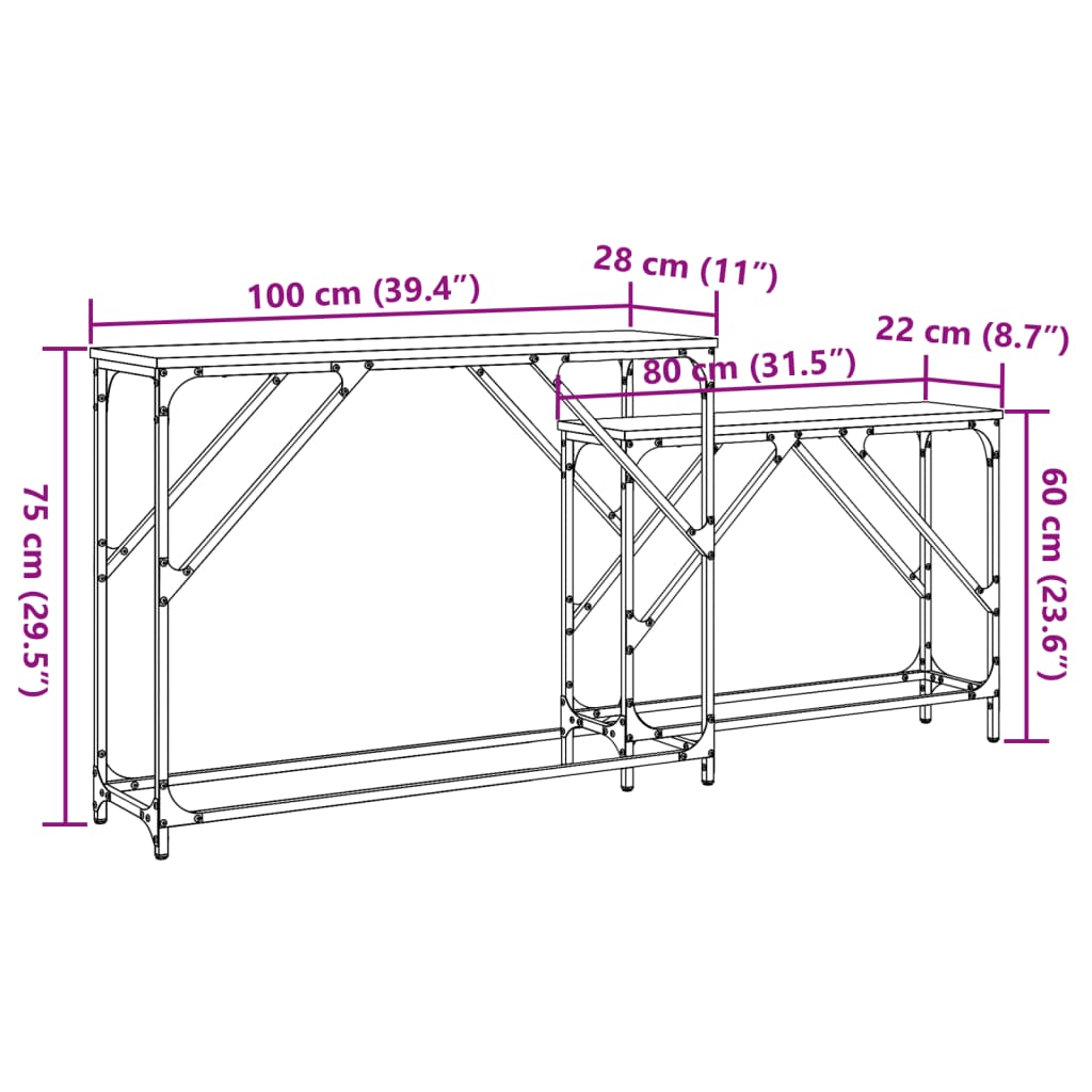Nesting Console Tables 2 pcs Smoked Oak Engineered Wood
