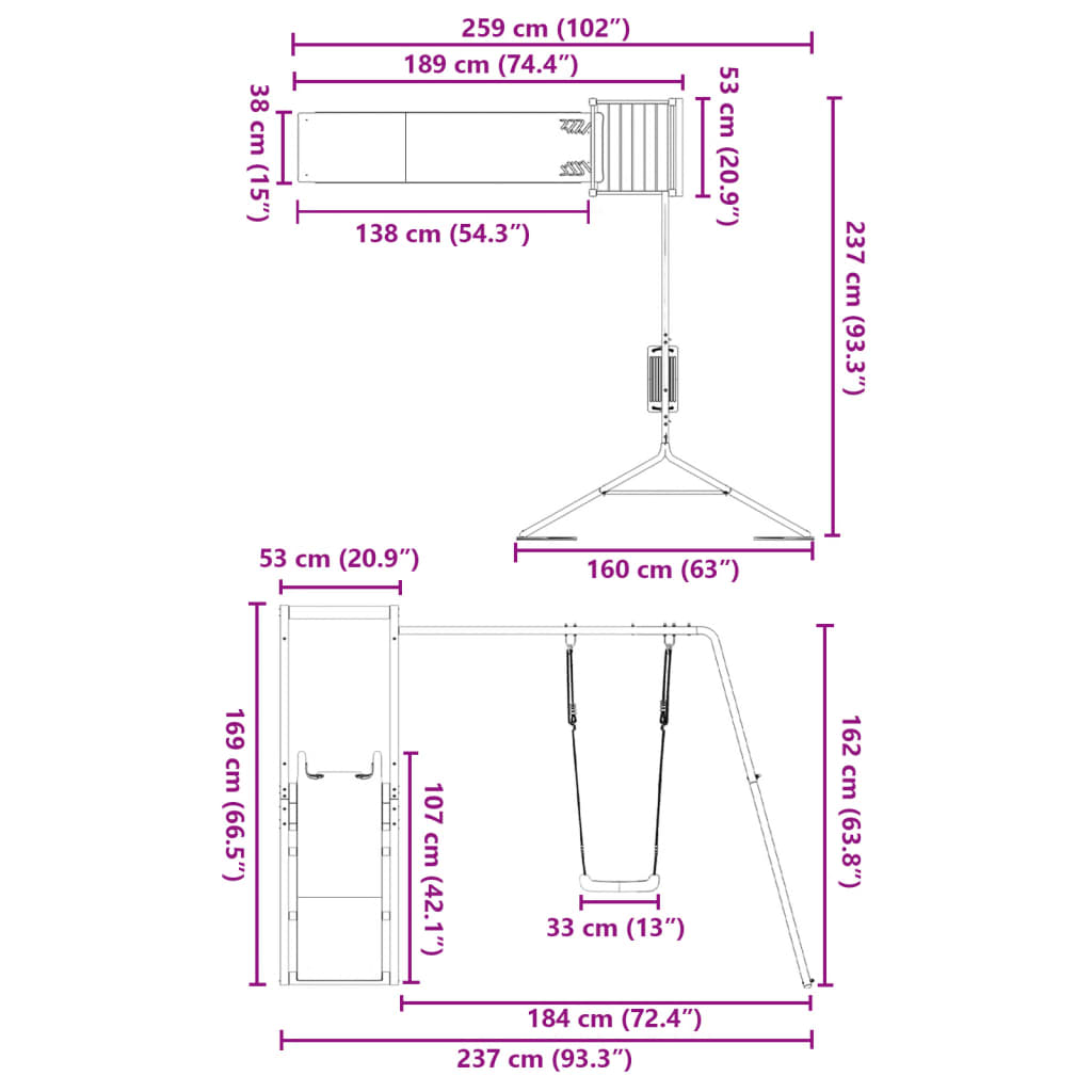 - Swing dimensions: 33 x 22 x 112.5 cm (W x D x H)