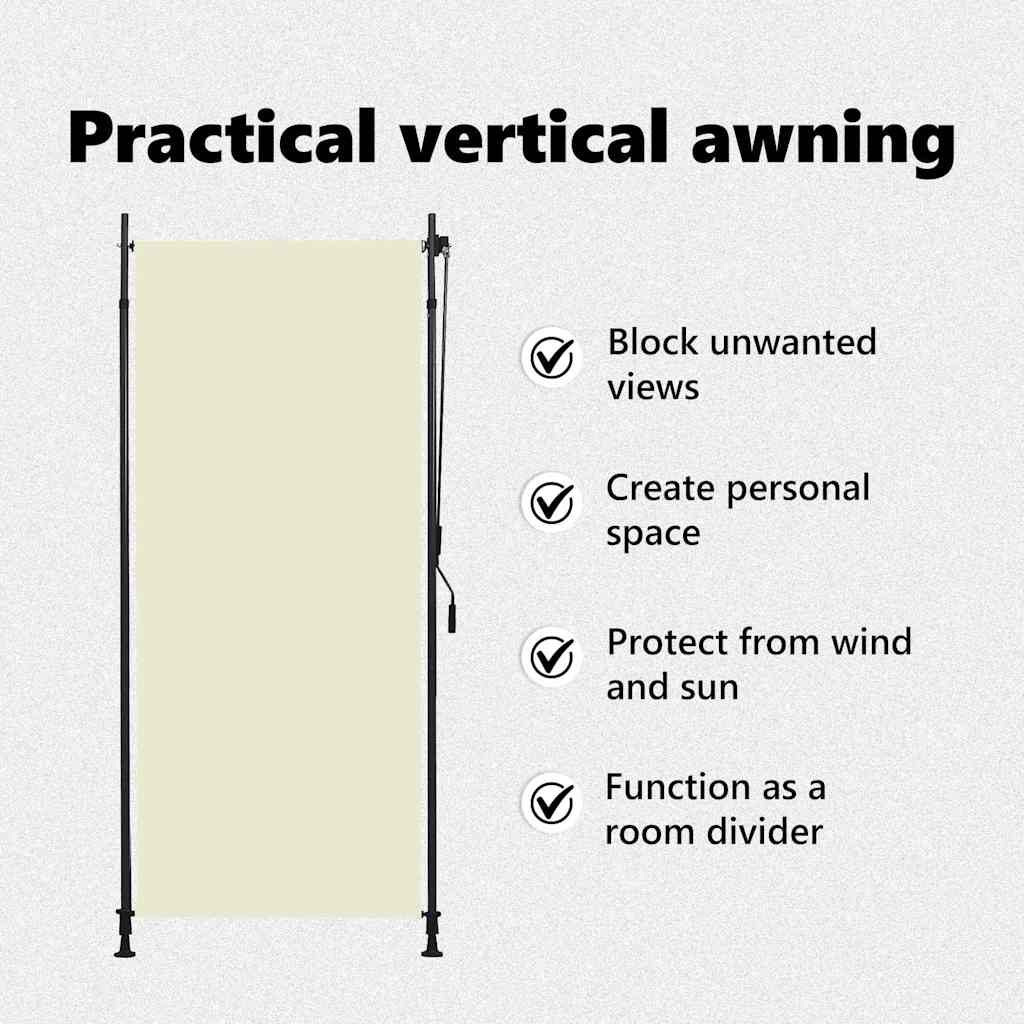 Create some privacy and shade on your balcony, patio, porch or pergola with our hand crank operated outdoor roller blind. Made of quality fabric with PA coating, it is fade resistant and can block the sun while allowing air to flow through. It can be easily rolled up and down with the hand crank operated system. This vertical blind comes with two standing posts with adjustable height from 225 to 275 cm. It can fit most ceiling height and ensure easy installation. The outdoor roller blind is easy to assemble.