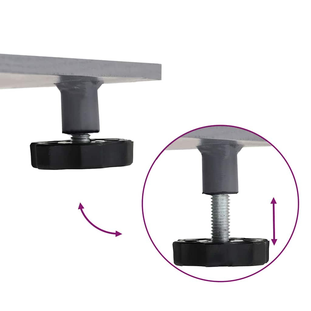 This durable parasol base is an essential accessory for enhancing your outdoor shade solutions. Crafted primarily from steel, it promises longevity and resilience in all your summer adventures, adding a touch of modern style to your garden or terrace. Elegant and functional, it boasts a square shape measuring 100 x 100 x 4 cm that seamlessly adapts to various outdoor environments, providing a stable anchor for your parasol, making it an essential for outdoor living enthusiasts. Whether hosting friends or lounging solo, its presence ensures comfort under the sun. Steel Construction: Made from robust steel, this parasol base offers a secure and steadfast support for your umbrella in outdoor environments. Its materials make it resistant to weather-induced wear, ensuring the base remains a staple in your garden or terrace settings. Ideal for seasonal use, it blends seamlessly with outdoor furniture while resisting fading due to its UV-resistant coatings. Adjustable Levelers: The parasol base features adjustable levelers, allowing users to fine-tune the height to counterbalance uneven surfaces effectively. This attribute aids in preventing accidental tilts, delivering peace of mind during windy days. The feet adjust with ease, enhancing usability across a variety of surface types, creating a versatile and worry-free shading solution. Modern Aesthetic: Its sleek, contemporary design aligns with minimalist outdoor setups, offering elegance without overpowering the landscape. The square form adds a sense of symmetry and balance to garden spaces. Handsome yet subtle, this design choice enhances the aesthetic value while matching seamlessly with modern outdoor decors. Assembly Required: The parasol base requires assembly using a wrench for secure installation. It is delivered with all necessary components for straightforward setup. Users can efficiently enable a sturdy base for their parasols, extending the utility of their outdoor areas. Care &Maintenance: Preserving its visual aesthetics is straightforward as it only requires wiping with a dry cloth to remove debris. This simple maintenance regimen ensures that your parasol base retains its attractiveness, providing chic comfort for years to come.