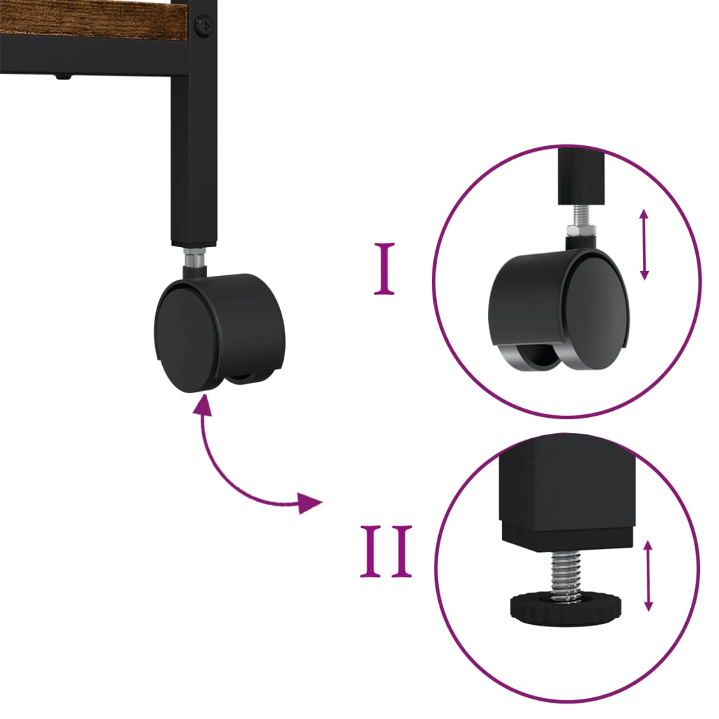 This 2-tier printer stand provides easy access to everything, keeping your workplace organised and tidy. Durable material: The engineered wood is of exceptional quality with smooth surface and also features strength, stability and resistance to moisture. The steel frame ensures sturdiness and stability. 2-tier printer stand: The top shelf is designed for printers, and fax machines, with storage space underneath for files, paper, books, and other office supplies. Keep everything easily reached and make your workplace organised and tidy. Easy to move: This printer table has 4 wheels and 2 of them are lockable, making it move flexibly and park stably at any time. Multifunctional organiser: The file organiser can be used not only as a printer stand but also as a bookshelf, nightstand, coffee stand, side table, etc. It can also be widely used in the kitchen to arrange condiment jars, kitchenware, plates, and dishes. Flexible installation: This computer printer stand can be used in two ways. You can place it on the floor with adjustable feet for stability on uneven surfaces or attach the wheels for easy movement.