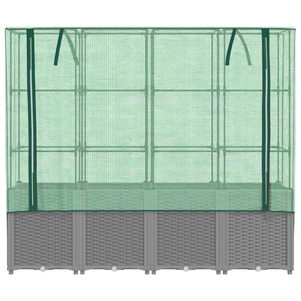 This raised bed with a greenhouse cover provides lots of growing space with its sturdy supporting frame.Sturdy construction: The raised bed, constructed from polypropylene, features a sturdy iron tube frame on top, enabling plants to grow and climb through it.Functional cover: The raised bed features a water-resistant polyethylene cover that protects your plants from extreme temperatures and keeps out insects, birds, and small animals.Practical design: The raised bed includes zippers for ventilation, allowing you to adjust the cover as needed. Additionally, it features ropes at the top, making it easy to secure the net to the tube.Rattan look design: The raised bed, featuring the rattan look design, adds a touch of natural charm to your outdoor living space.Wide applications: The raised bed provides ample space for your plants, vegetables, herbs, and flowers. You can use it in gardens, courtyards, balconies, and so on.