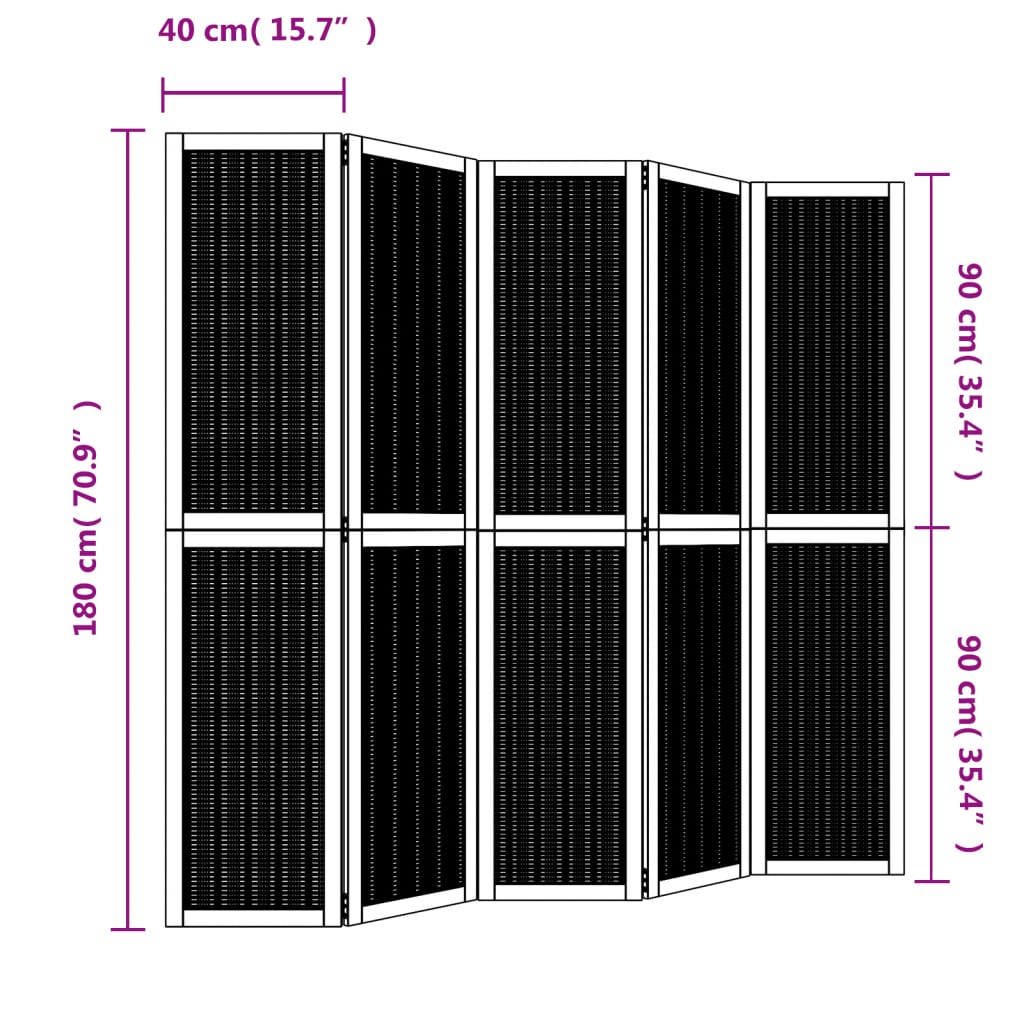 Room Divider 5 Panels Brown Solid Wood Paulownia