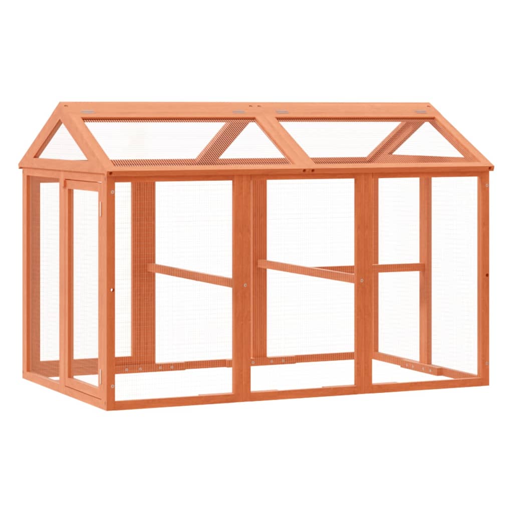The large run box offers your small animals plenty of space to play, eat or sleep in the fresh air. Solid pine wood: Solid pine wood is a beautiful natural material. Pine wood has a straight grain, and the knots give the material its signature, rustic look.Wire mesh: The wire mesh of the garden run box helps prevent mischief and unexpected accidents. It also allows you to observe your little animals daily and guarantees your animals a wide field of view and enough fresh air.Easy cleaning: The hinged roof and side doors of the outdoor aviary can open smoothly making cleaning easy.