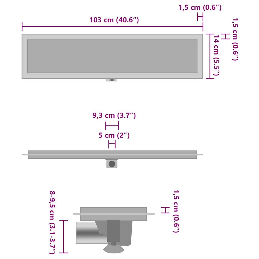 Shower Drain with 2-in-1 Cover 103x14 cm Stainless Steel