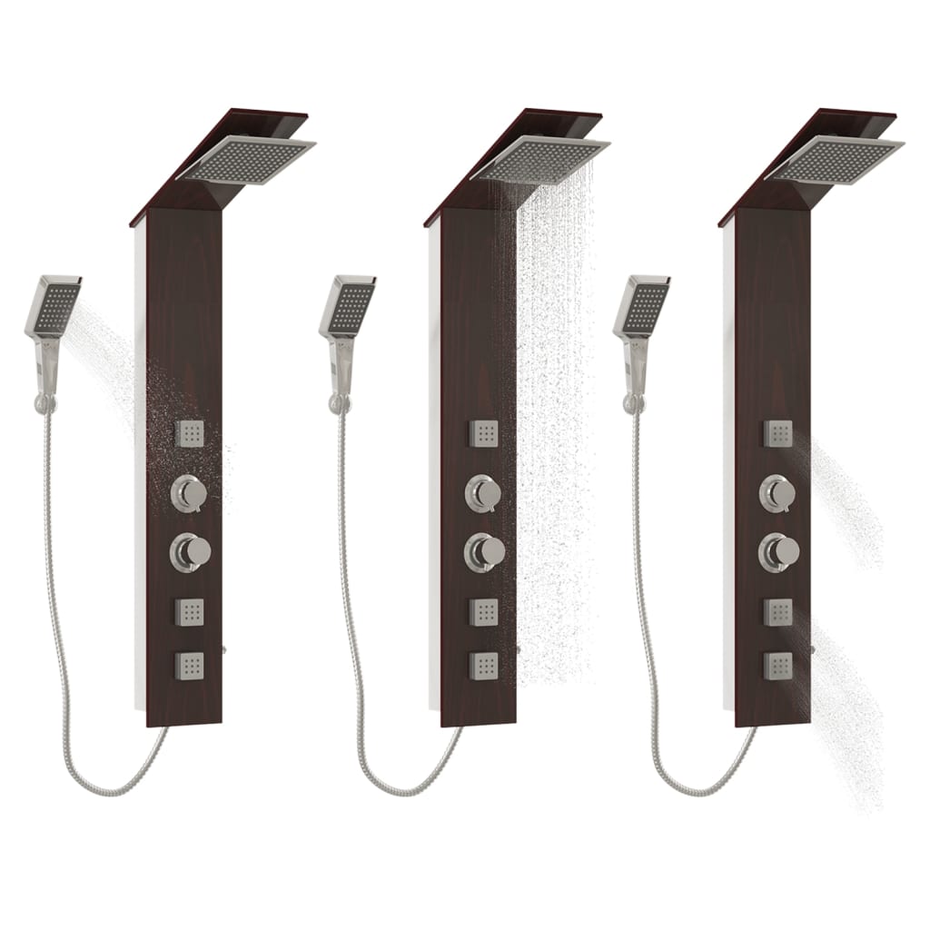 This multifunctional shower panel system has a stylish design and will make a great addition to your bathroom. The shower tower is made of high-quality glass with a beautiful wood grain print. It has three functions: rainfall, massage jets and a handheld showerhead, which can be easily selected by means of a knob. Immerse yourself in a truly relaxing shower experience and enjoy the modern style of this beautifully designed shower panel system!