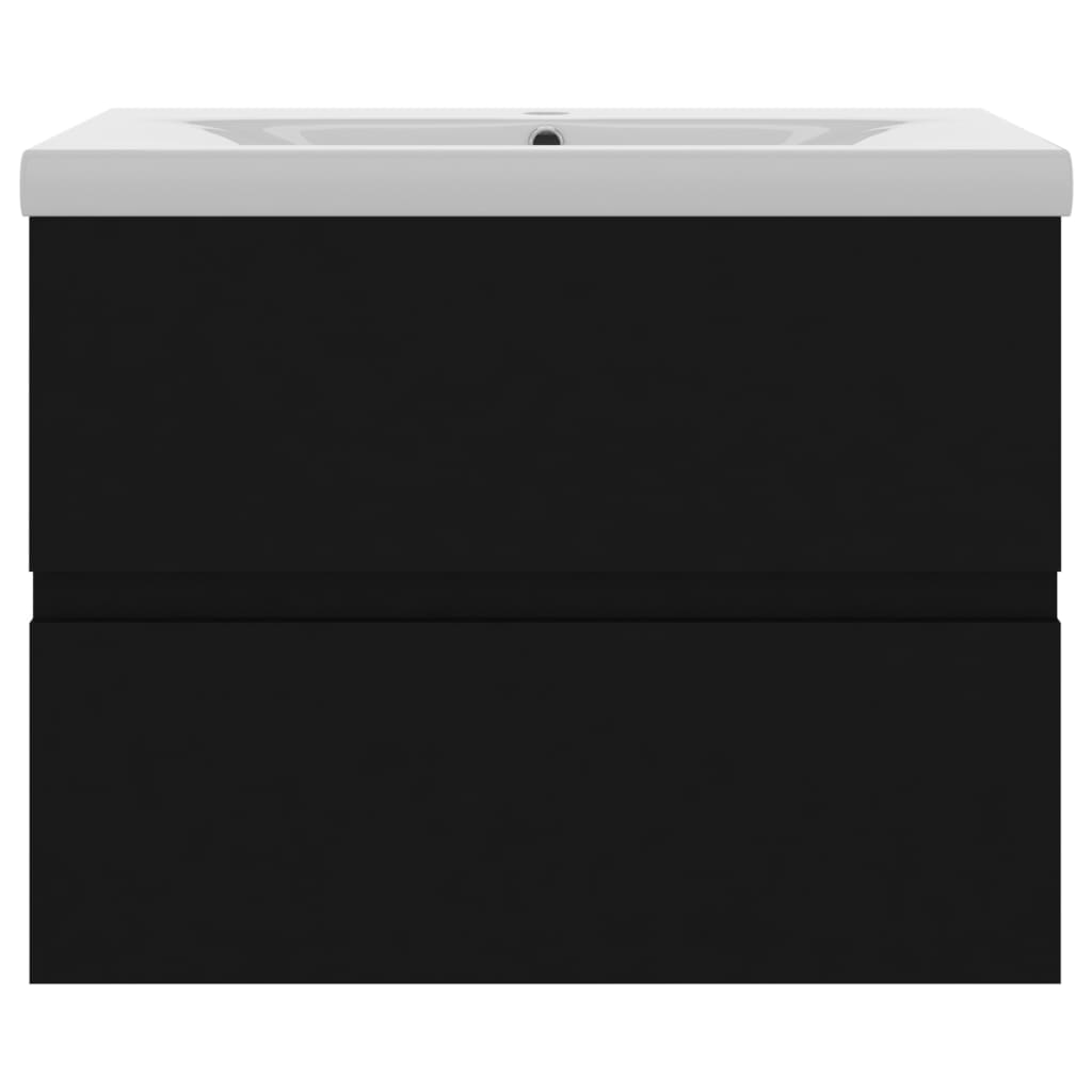 Sink Cabinet with Built-in Basin Black Engineered Wood