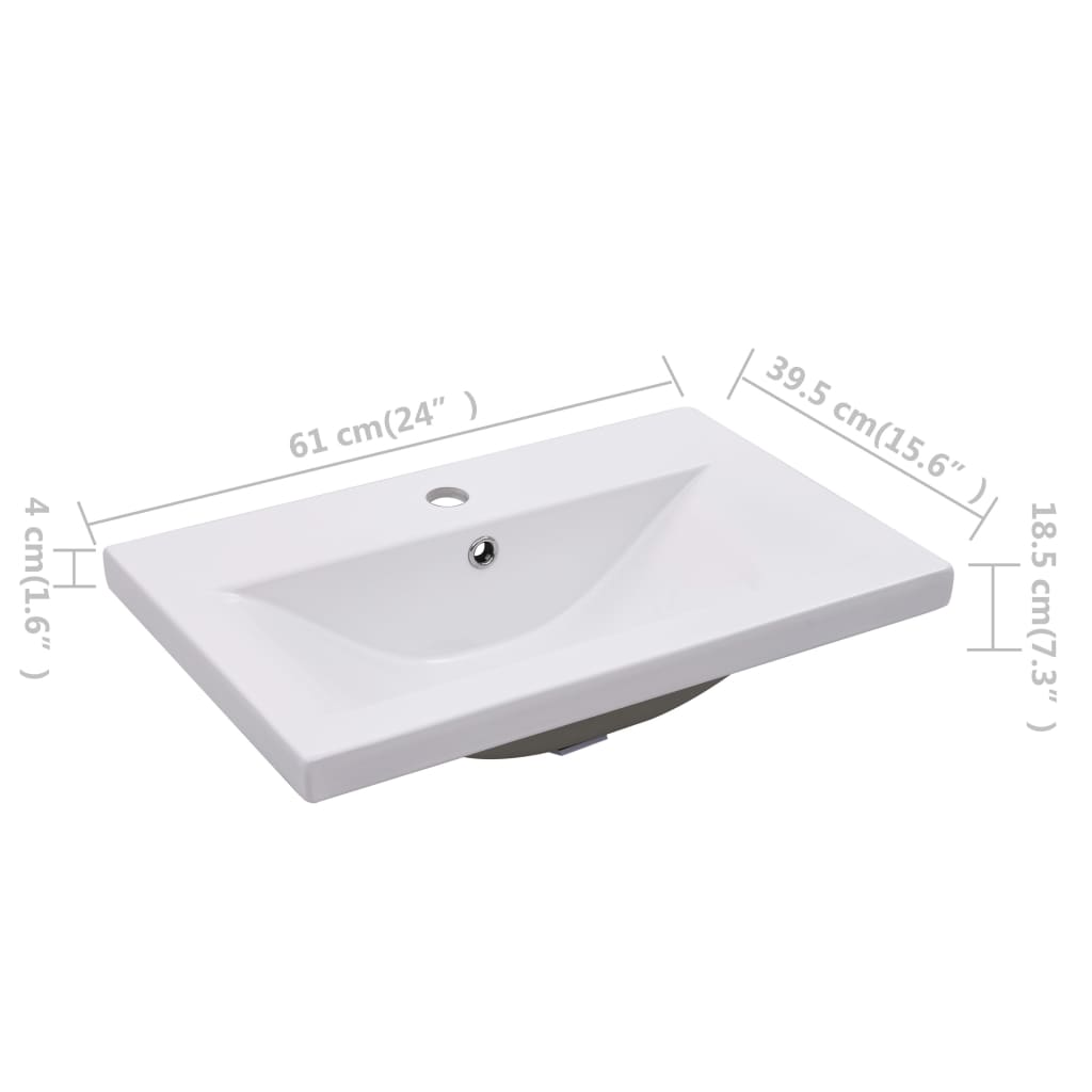 This sink cabinet with a built-in basin is a perfect match for your bathroom or washroom with a striking, tidy appearance. The storage cabinet has 1 drawer, offering ample storage space to store items in your bathroom. It fits perfectly under the sink and makes bathroom storage quite convenient. Made of ceramic, the basin can not only serve as a vessel for daily use but also as an adornment in your living space. Thanks to its trendsetting and contemporary design, this washbasin will definitely suit any decor. An overflow is also equipped to flow water out when it gets too full. Its glazed surface brings itself a modern yet elegant design. Additionally, the cabinet and basin are easy to clean with a damp cloth. Please note: The tap and the drain are not included in the delivery.