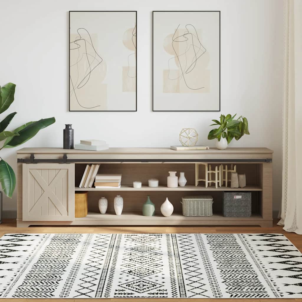 This sliding cabinet door kit lets you open or close the cabinet quietly and effortlessly.Durable material: The sliding cabinet door kit is made of powder-coated carbon steel, which is sturdy, durable, and heavy-duty.Silent and smooth: Thanks to the internal bearings, your doors can slide smoothly and quietly. Door stops are also included to prevent the derailing of the rollers, while the rubber gaskets will buffer the bump from the rollers and reduce the noise.Wide applications: This sliding cabinet door kit includes 2 sliding rails (with a total length of 213 cm) and 2 wear-resistant rollers. It is designed for sliding doors with a thickness of 22–25 mm in barns, kitchens, and studies, and so on.Timeless design: The sliding cabinet door kit suits almost any decor with its compact, timeless design.
