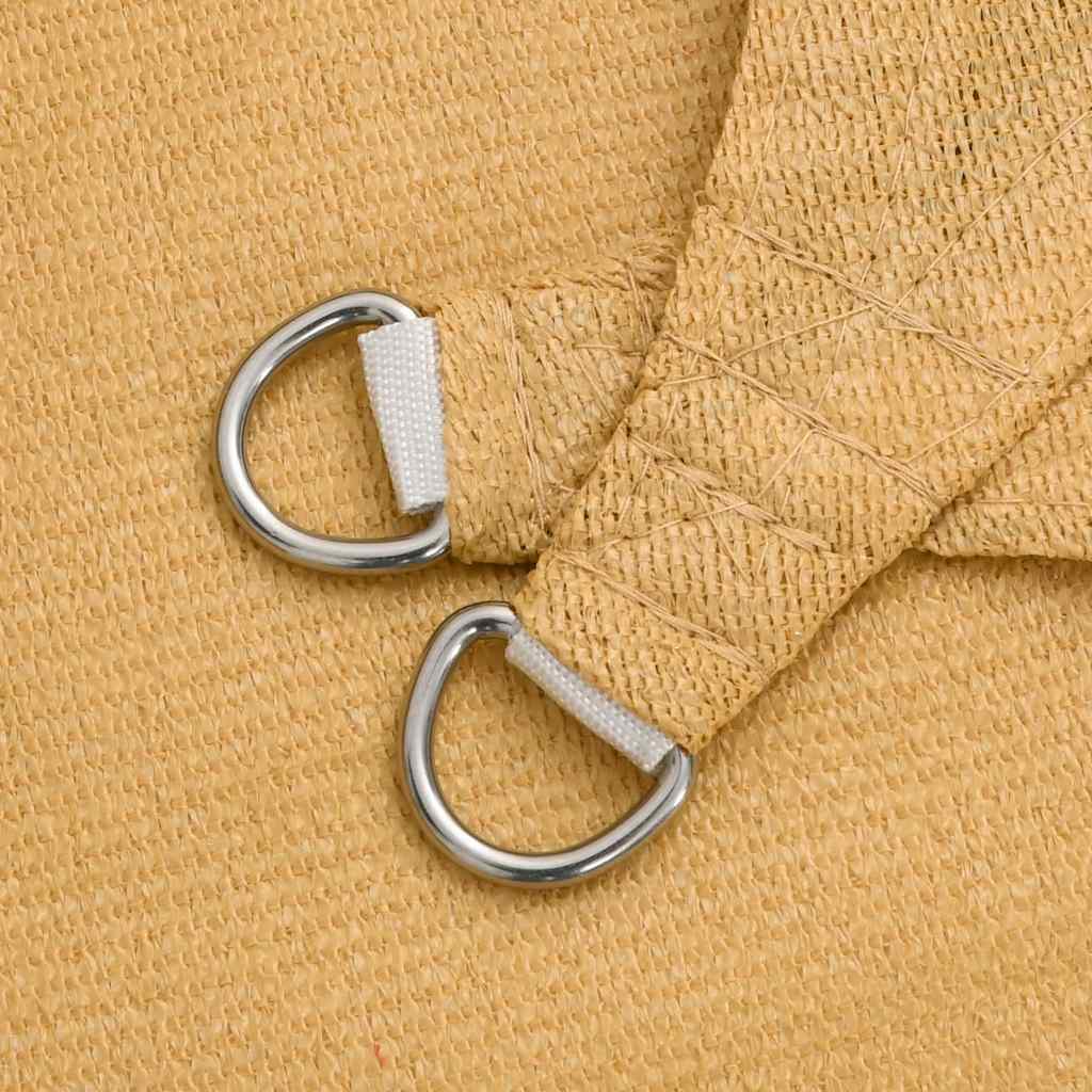 Create a little shelter from the sun, anywhere you want, with this HDPE sunshade sail. Durable material: High-density polyethylene (HDPE) provides a strong surface durability and is resistant to impacts as well as scratches. It's also UV resistant, which makes it safe from damage and discolouration caused by the sun.Easy to assemble: The sunshade is easy to assemble with the stainless steel fasteners at every corner and the included ropes.Wide application: The sun sail tarp can be widely used in a garden, patio, pool, backyard, yard, and other outdoor area. It is perfect for creating some temporary shade.