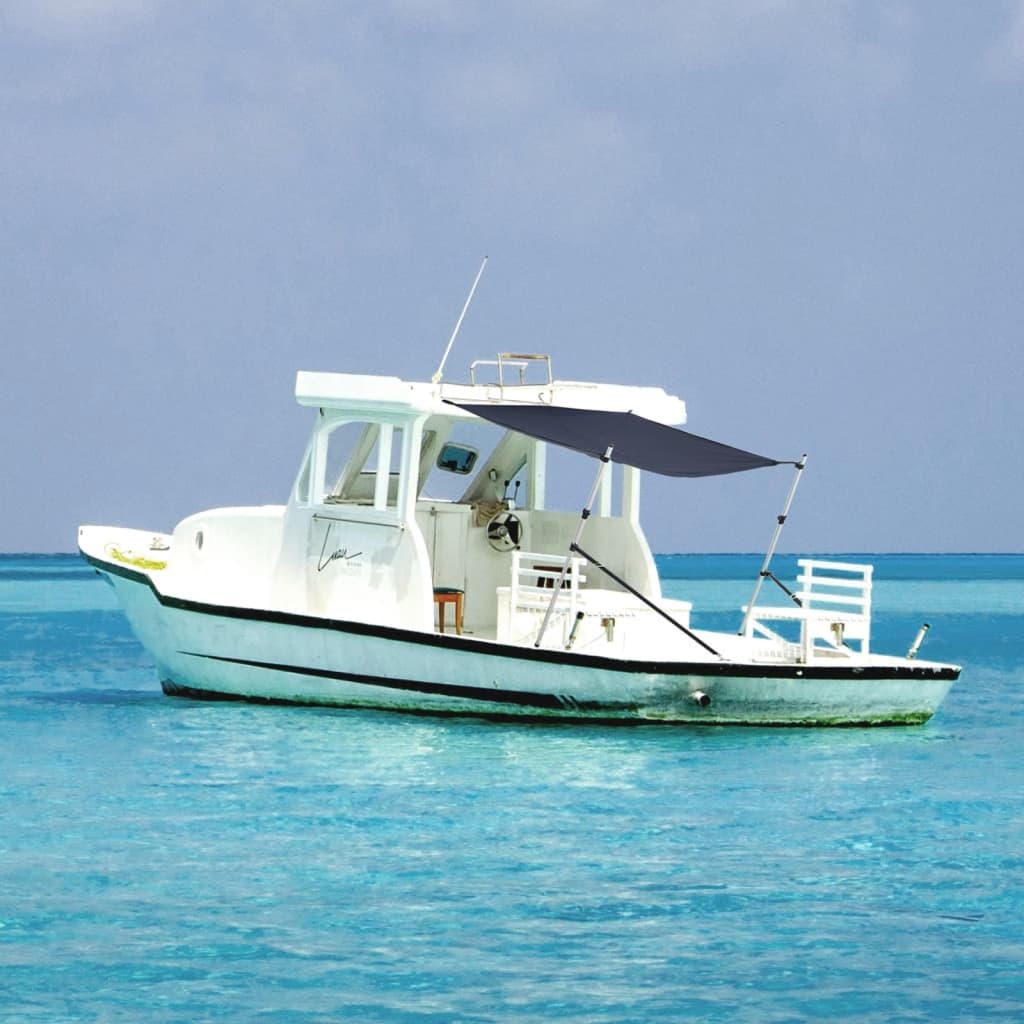 By owning this t-top shade extension set, you can enjoy a cool and comfortable day out on your boat without being exposed to the sun. Durable material: This t-top shade extension is made of 100% polyester with a PU coating, making it UV-resistant, water-resistant for years of service.Sturdy structure: The t-top shade extension has an aluminium frame, making it sturdy and stable.Easy to use: This t-top shade extension has 2 support poles and straps with clips, so you can easily adjust the height for your requirements.Practical design: This bimini round base features a 3-hole flange fixing, which enhances durability and ensures a tight fit. By distributing the pressure of the nut evenly, it reduces the risk of part damage and minimises the chance of loosening due to uneven surfaces.Wide applications: This t-top shade extension is compatible with a wide range of t-tops and bimini tops. It can be used on ski boats, fishing boats, and various other watercraft as long as the tops are within the appropriate size. Good to know:Please use the boot to protect the fabric when not using the bimini top and fold the canopy when vessel speed exceeds 25 knots.