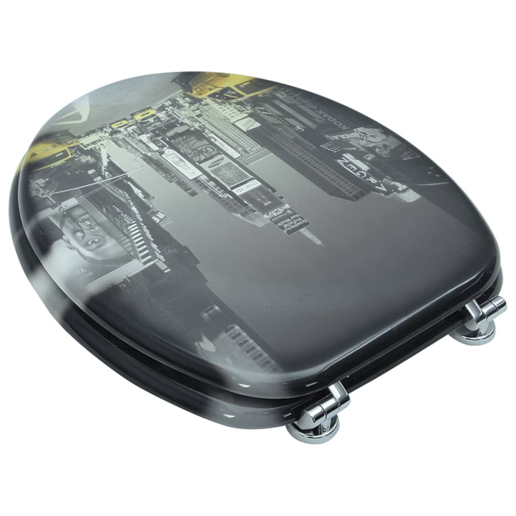 This toilet seat, with its spectacular look, will be an eye-catcher in any bathroom. It will not only add a touch of style to your bathroom, but also is highly durable. Its MDF lid and seat are sturdy and hard-wearing. The hinges are made of extra strong and durable chrome-zinc alloy. This toilet seat fits all common toilet bowls as the hinges can be adjusted in width from 12 to 20 cm. It is also simple to install and easy to clean.