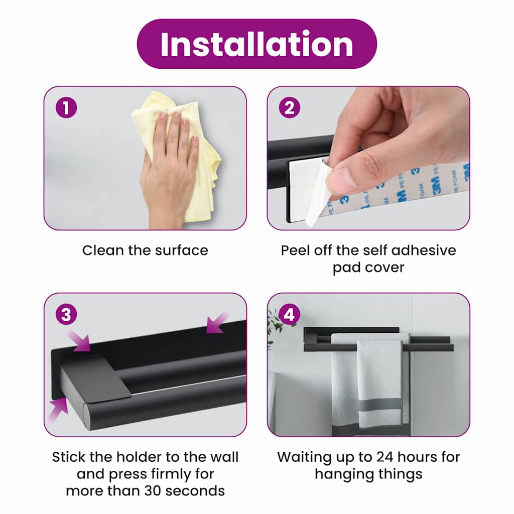 Towel Rack Black 40 x 9 x 4 cm Stainless steel