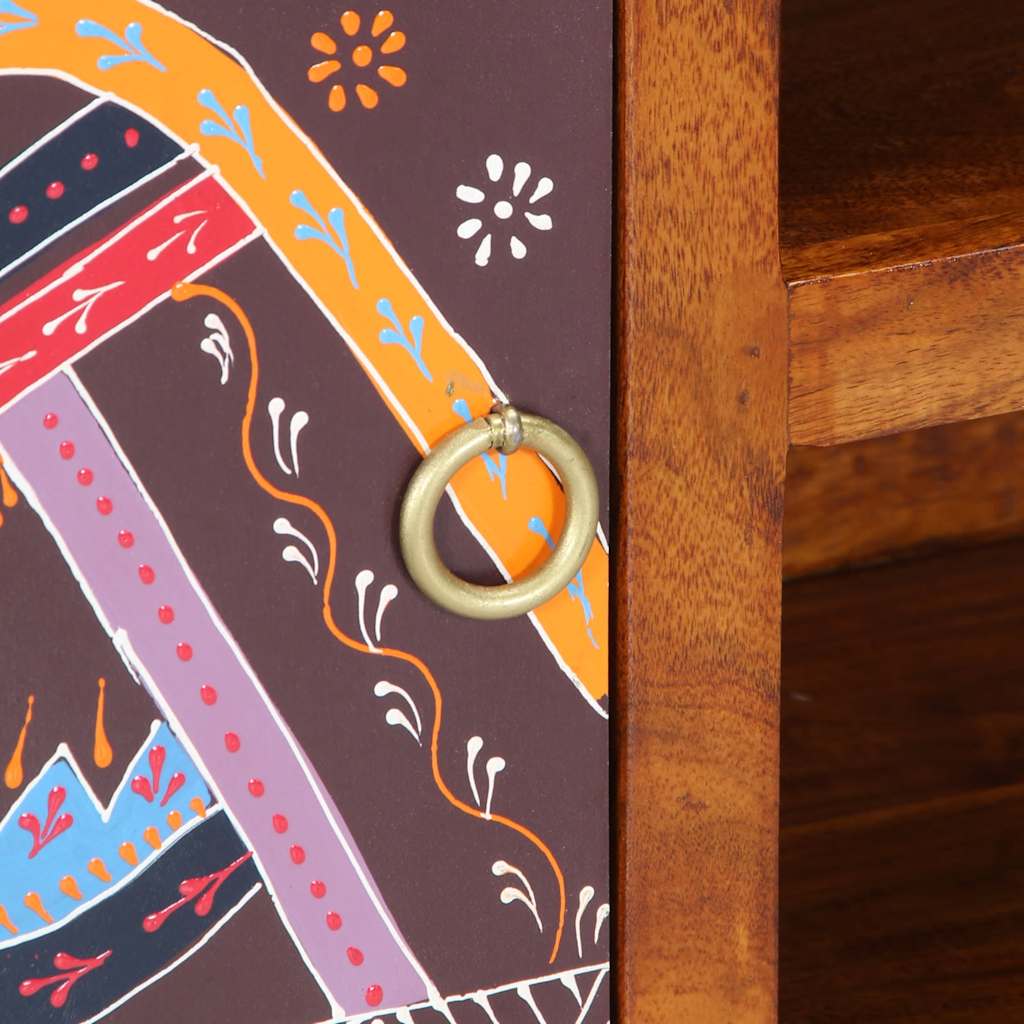 This TV cabinet with ample storage space is a practical and eye-catching addition to your living room or bedroom. Robust and stable material: Solid acacia wood is known for its strength and durability. Its diverse colours and unique grain patterns give it an attractive appearance. With good stability and resistance to weathering, it is ideal for crafting indoor and outdoor furniture.Ample storage space: This TV cabinet provides ample storage space for keeping your magazines, books, DVDs, and multimedia devices well-organised and within reach.Stable and sturdy tabletop: The sturdy top is ideal for placing your TV and stereo systems or some decorative items like vases or potted plants.Vibrant beauty: The TV sidebaord features a hand-painted design with a mix of vibrant colours, making it an eye-catching accent to any room and enhancing your home decor with a unique artistic flair.Easy to maintain: This TV stand is easy to clean with a damp cloth and requires less maintenance. Good to know:Each item is unique with variations in colours and grains. The delivery is random, ensuring the exclusivity and individuality of your product.