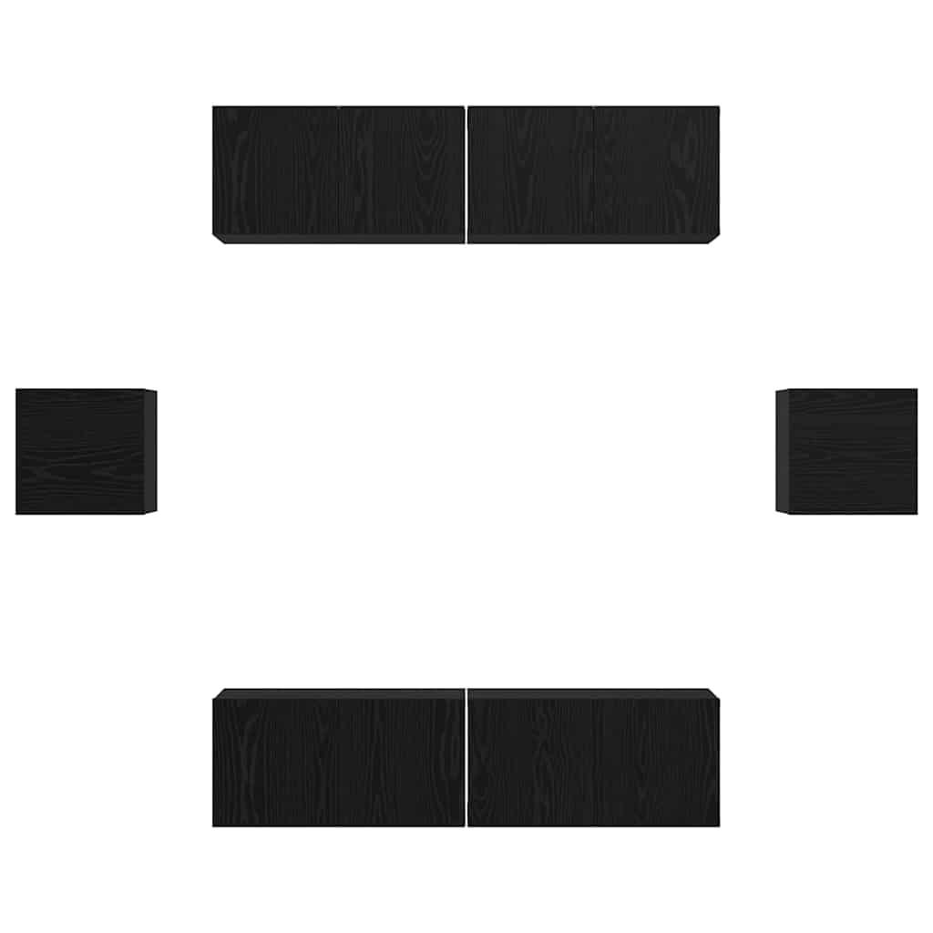 TV Cabinet Set Wall-mounted 6 pcs Black oak Engineered wood
