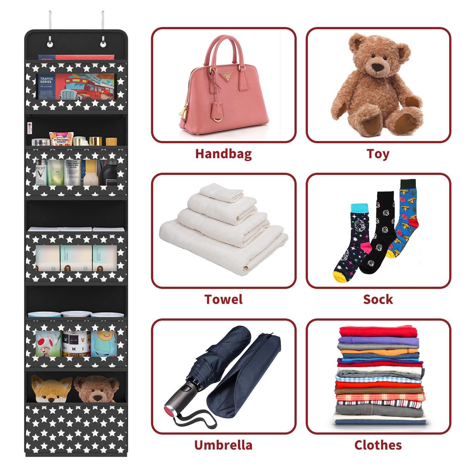 SPACE SAVING ESSENTIAL: No more room for your stuff? Make use of your door or closet door with this vertical organiser to save floor space, tidy up, keep things easily accessible, and reduce clutter. All of your essential items can be neatly stored in multiple compartments without taking up a lot of room in your luggage.