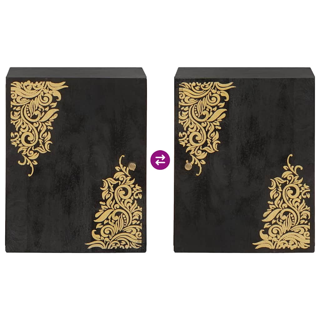 Wall Cabinet with Door Black 38 x 33 x 48 cm Solid Mango Wood