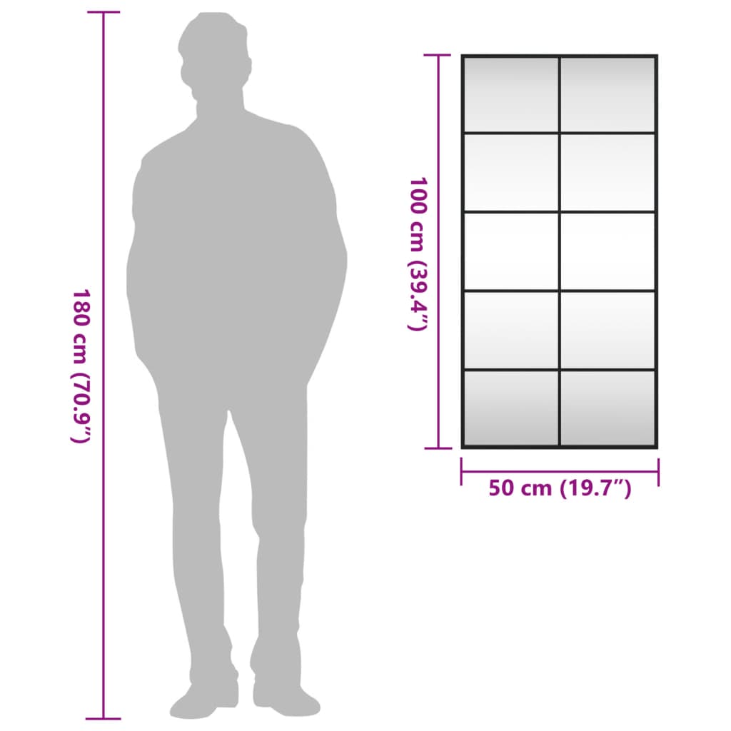 Wall Mirror Black 50x100 cm Rectangle Iron