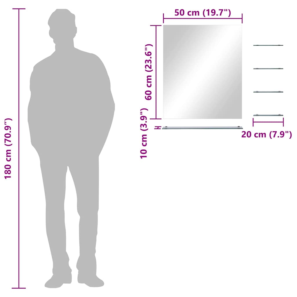 Wall Mirror with 5 Shelves Silver 50x60 cm