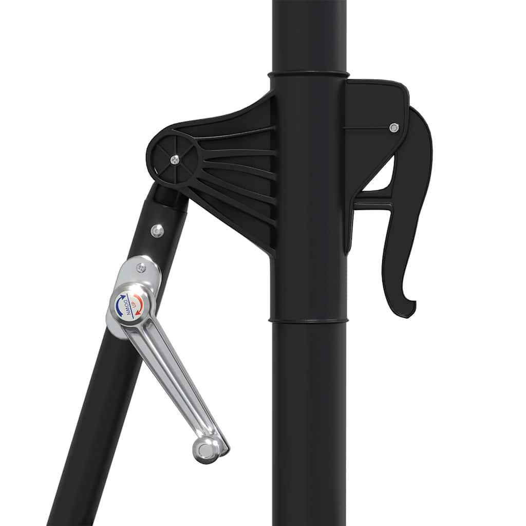 This elegant wall-mounted garden parasol is perfect to create some shade and protect you from the sun's harmful UV rays. Made of UV protective and anti-fade polyester, the parasol cover provides you with optimum protection against the sun and is easy to clean. The exclusive design of this parasol allows you to tilt the parasol to block the sun as it heads down towards the horizon. The strong metal pole, along with the 8 durable ribs, makes the parasol very stable and durable. The garden parasol can be easily opened and closed thanks to the crank mechanism. The item is easy to assemble. Delivery also includes the mounting accessories. Please note that we recommend treating the parasol fabric with a waterproofing spray if it is subjected to heavy rainfall. The height of this wall-mounted parasol depends on the height it is mounted on the wall
