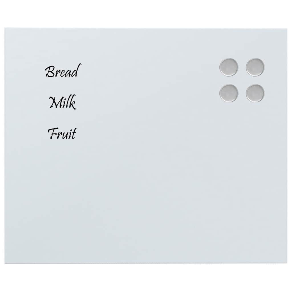 Special announcements or everyday messages will look concise and well-organised with this wall-mounted magnetic board. Fluent writing: The dry-erase board provides you with a smooth writing experience, and the handwriting is easy to clean.Durable tempered glass: The magnetic notice board is made of tempered safety glass, making it durable and lasting a long-time.Multifunctional writing board: Use the wall-mounted magnetic board as a blank canvas to jot down daily plans and to-do lists or a collective place for putting your creative thoughts and ideas.Convenient installation: The required wall mounting materials are included, which makes the magnetic chalkboard easy to attach to any wall in your home, office, and school. Good to know:Screws and plugs for installation are not included.To ensure proper magnetic performance, please use the matching magnets provided.