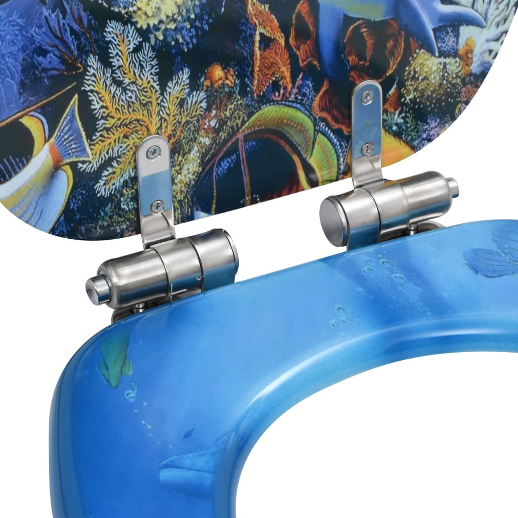 WC Toilet Seats 2 pcs with Soft Close Lids MDF Dolphins Design