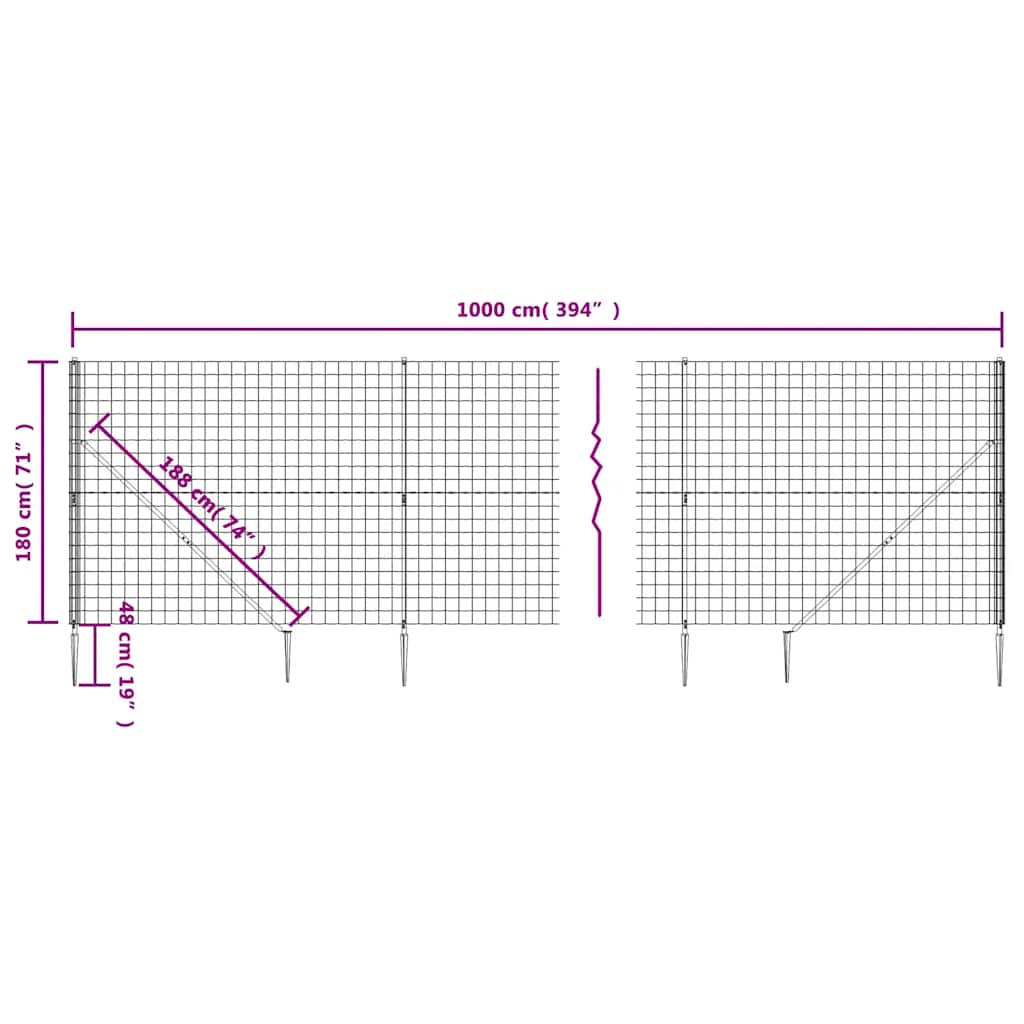 Wire Mesh Fence with Spike Anchors Anthracite 1.8x10 m