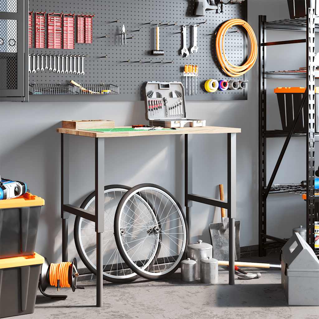 The workbench is a great helper whether you want to finish repair work or fulfil your DIY dreams! Robust and stable material: Solid oak wood is known for its strength, durability, and beautiful grain pattern, making it great for long-lasting furniture. Its natural resistance to insects and fungi ensures that oak furniture remains attractive and functional for years.Stable and long-lasting frame: The powder-coated metal frame is strong, stable, durable, and resistant to corrosion and harsh weather, ensuring long-lasting performance.Large working area: The work table provides a large working area to place your drills, cable drums, and other tool accessories.Versatile use: Features a simple and clean design, you can use it as a tool bench or work desk according to your needs. The workstation is meant to be a practical and convenient piece of furniture. Good to know:Each item is unique with variations in colours and grains. The delivery is random, ensuring the exclusivity and individuality of your product.We recommended using a screwdriver instead of an electric drill to avoid wood cracking when attaching the legs. Warning:This tabletop has no predrilled holes and screws are not included. Therefore holes have to be predrilled, and screws have to be purchased before assembling this work table.