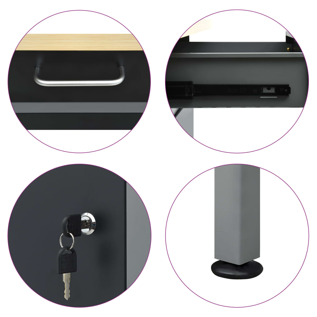 This heavy duty workbench, standing out with ample storage space and 500 kg loading capacity, will be an essential addition to your workshop and garage. The large and sturdy tabletop provides a stable platform for all your repair works. The workbench has 6 drawers, ensuring that you can organize your tools, parts and accessories such as screws, nails and adhesive tape well. All drawers are equipped with ball bearing mechanism for smooth sliding. There is also a suitable compartment for larger tools, the cabinet with lockable door, which can easily accommodate drills, cable drums and grinders. Additionally, the feet are height-adjustable; you can put the workstation wherever you need it, and it will stand firmly even on uneven ground. This workstation is crafted from premium steel and engineered wood, making it extra sturdy, durable and easy to clean. Assembly is easy. The work bench will be a great helper whether you want to finish repair works or fulfill your DIY dreams!